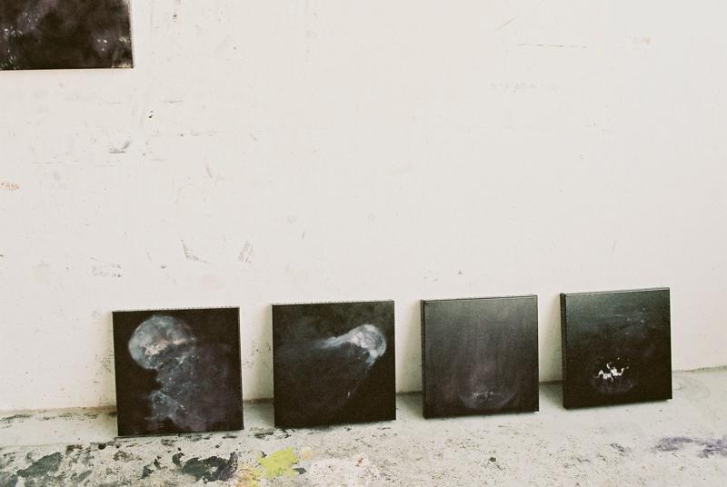 En longeant les bassins, pour me rendre à mon atelier sur le port, mon regard a suivi les méduses, avec de plus en plus d’insistance. Leurs corps translucides disparaissent et apparaissent, sans cesse, dans les eaux troubles, comme des fantômes. La contraction de leurs ombrelles évoque irrésistiblement le clignement des yeux. Dès lors, je me suis retrouvé à voir l’œil écarquillé qui me regardait. J’en suis resté médusé. De cette expérience troublante, j’ai tiré cette suite de tableaux.Ces peintures ont ainsi été réalisées de mémoire. Le tableau, constitué de couches fines, qui laissent voir tout en recouvrant le dessous, s’est constitué lui-même comme l’émergence concrète d’un souvenir. La dilution des pigments m’a permis de trouver un équivalent pictural à l’élément liquide représenté. Le travail s’est fait à l’horizontal, les toiles posées à même le sol, comme s’il s’agissait de peindre un surface d’eau. Cependant, les toiles, retrouvant sur le mur la verticalité des modalités d’exposition, relèvent plus d’une plongée dans l’étendue liquide, que d’une une vision au ras de l’eau.Cette suite m’a conduit à utiliser une grande diversité de format –circulaire, panoramique, carré- pour renouveler les compositions, où l’œil se fixe partout et nul part à la fois.