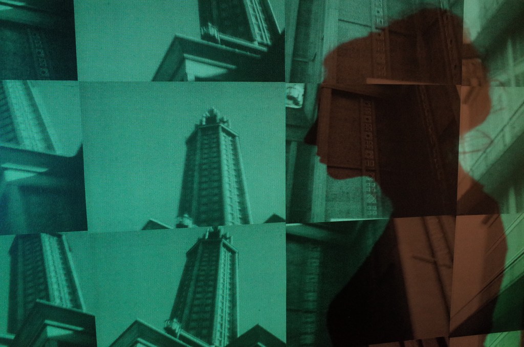 Noir et blanc contrasté, lignes de fuite basculantes, cadence accélérée, diagonales instables contribuent à la vision baroque que donne Cross de l’architecture Perret, rendue quasi illisible. Cette approche antidocumentaire est renforcée par l’ajout d’un effet 3D artisanal qui, loin d’apporter une impression de réalité supplémentaire, est davantage de l’ordre de la fantaisie ciné- graphique. On pourra ainsi faire l’expérience de Double Cross avec ou sans lunettes.