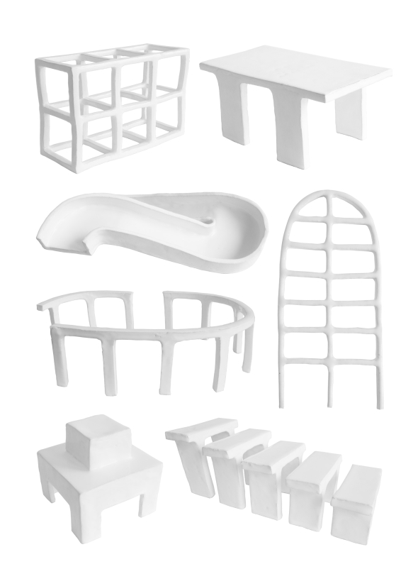Delphine Boeschlin propose une restitution, conçue pour le lieu, de ses recherches plastiques et graphiques développées à partir du matériau puisé lors de deux résidences à Brasília. L’exposition présente l’édition d’un livre d’artiste en leporello qui déploie le processus créatif initié par l’artiste, l’ensemble des céramiques issues de son expérience brésilienne ainsi qu’une pièce monumentale extraite de cette série. Une manière de renouveler le regard sur les « unités discrètes », ces lieux délaissés mais indispensables, générateurs de formes insolites, qui parsèment et parfois enchantent nos villes.