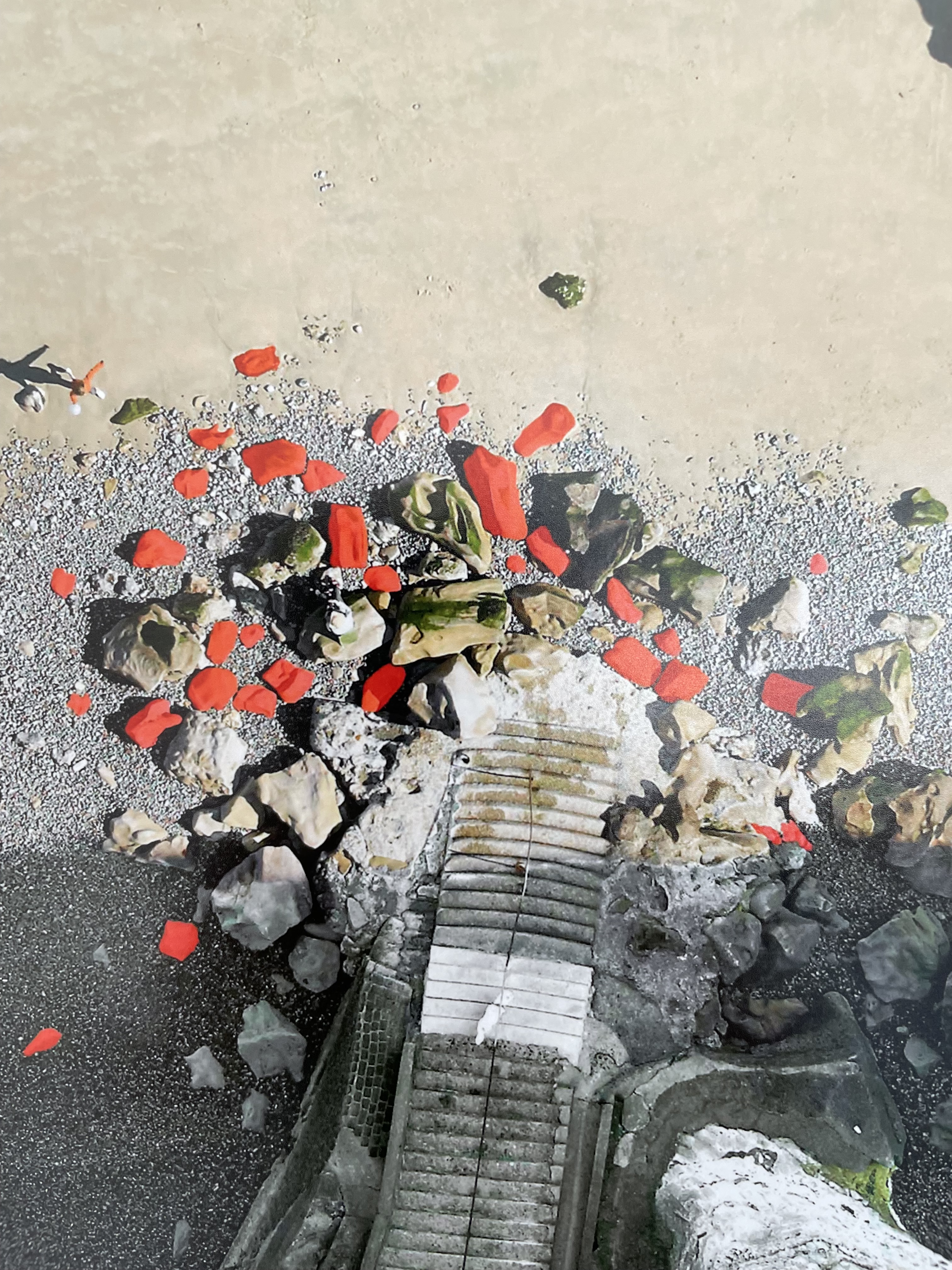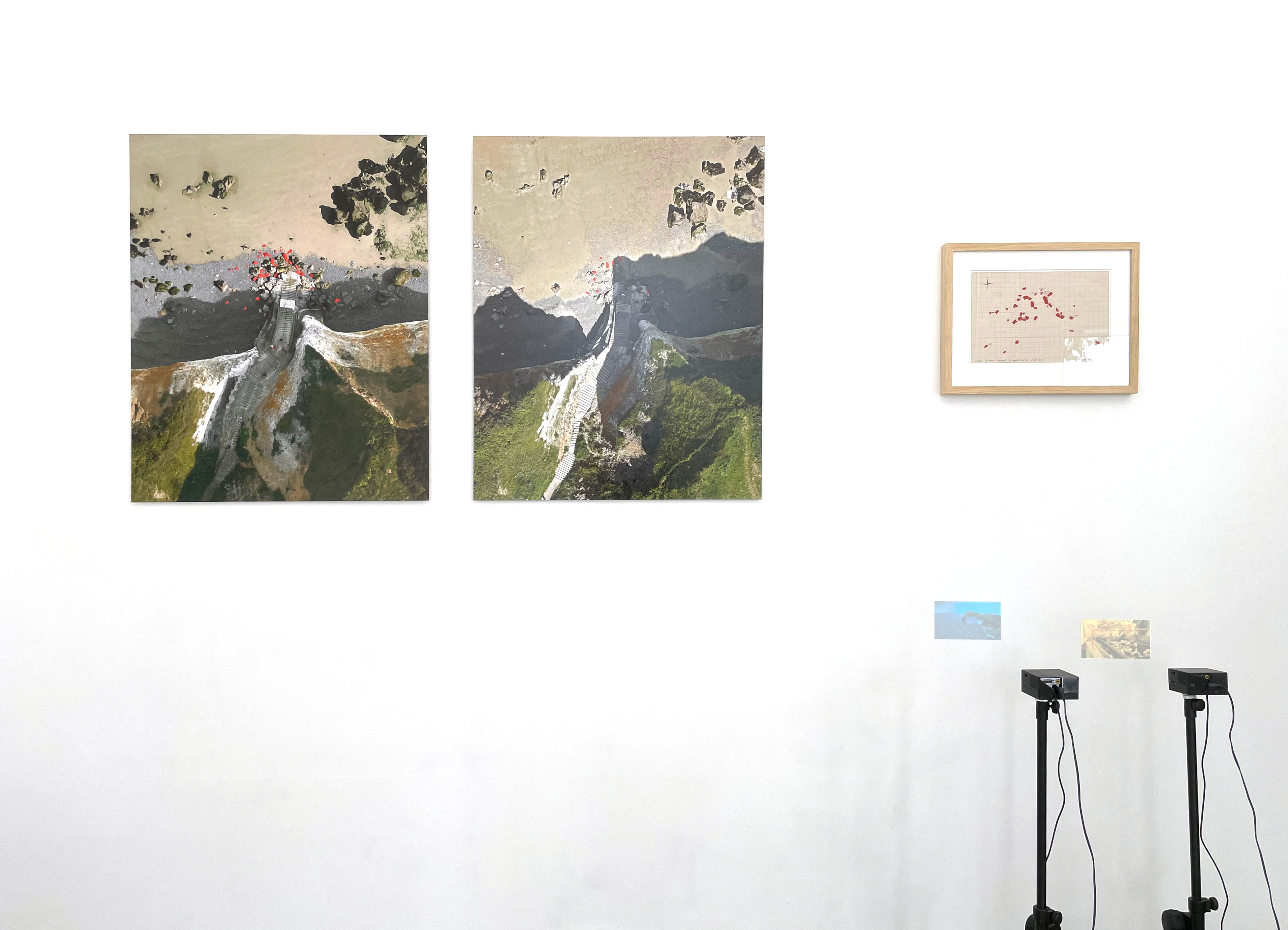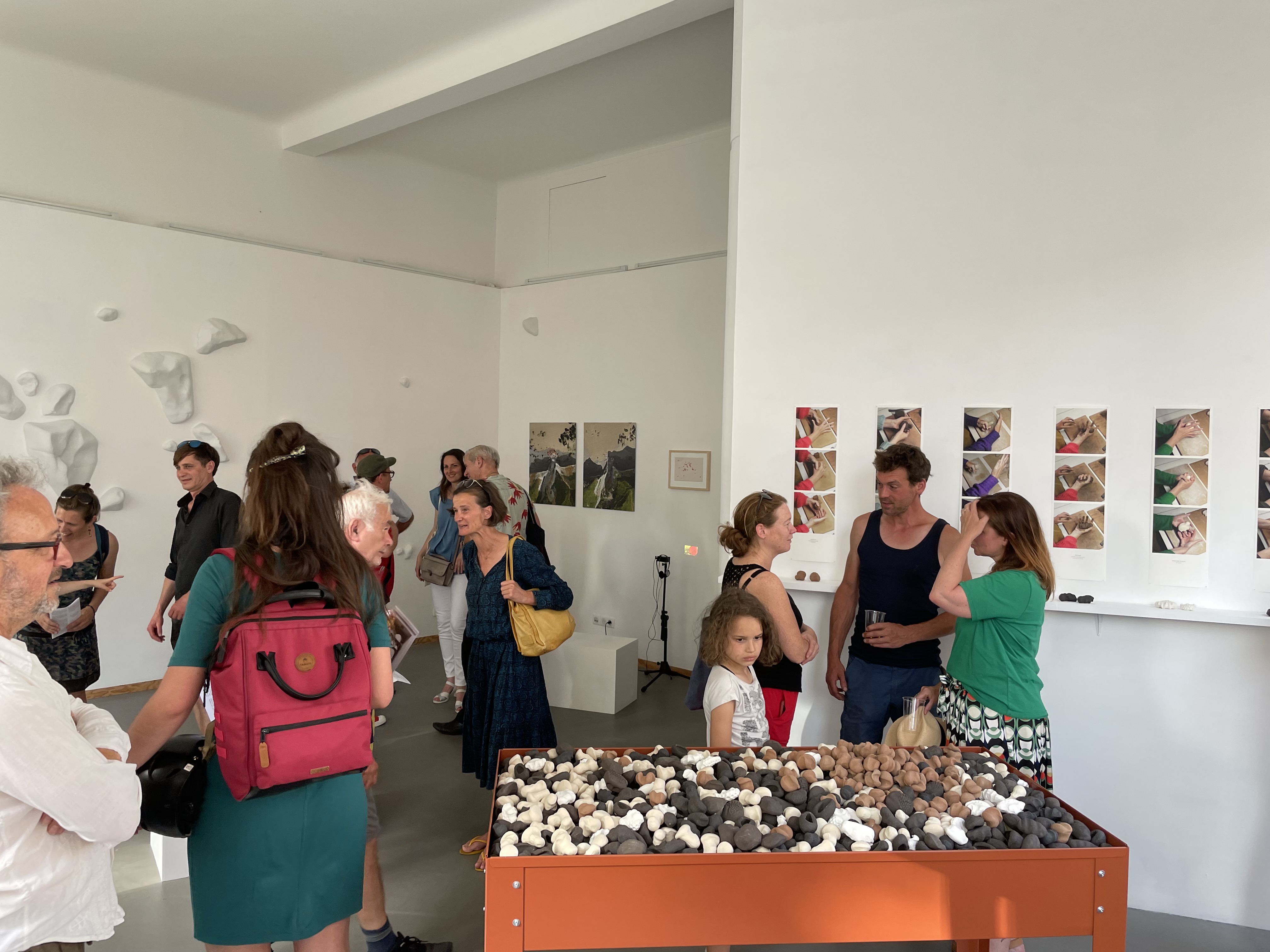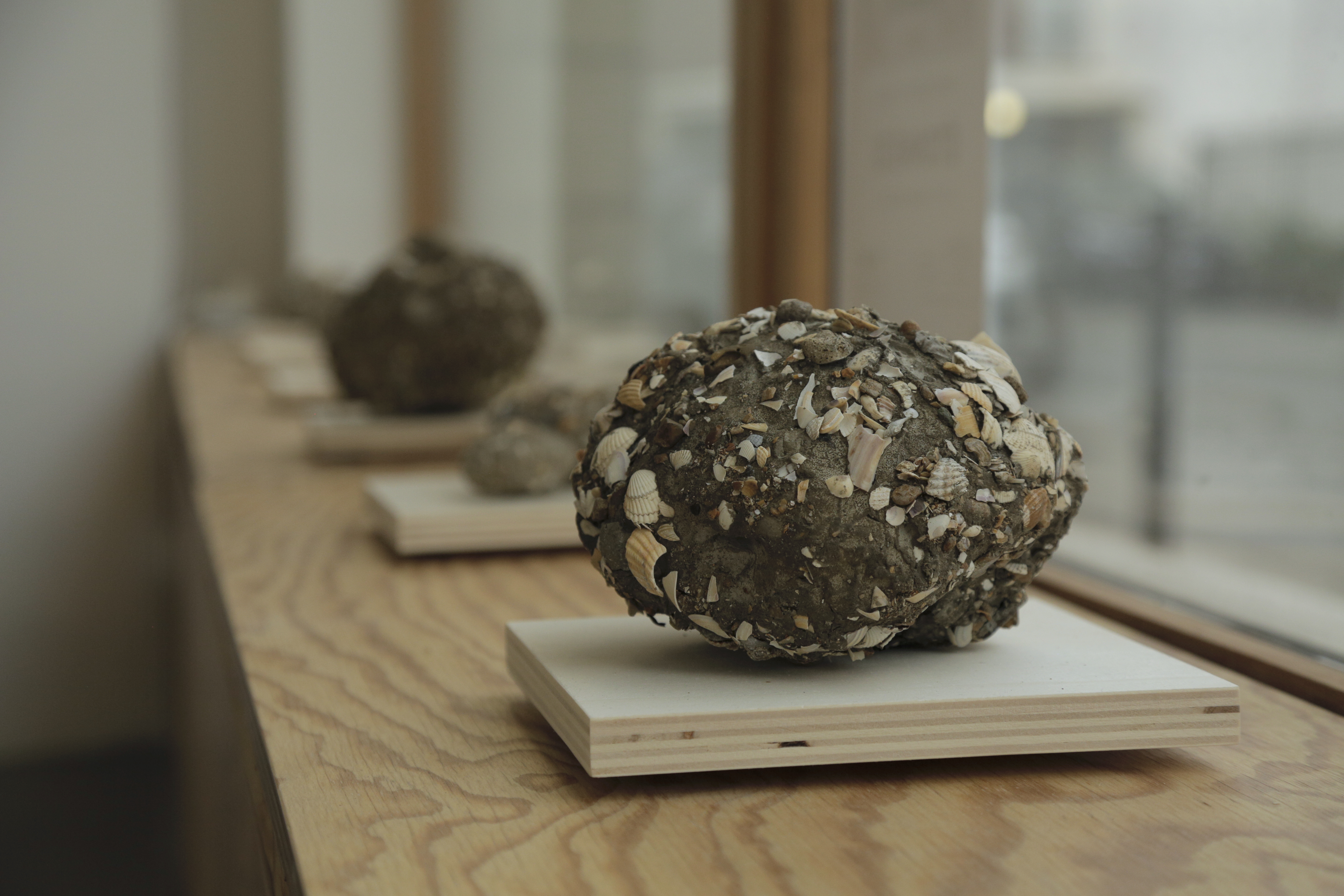 Désormais réalisés en porcelaine, grâce à une résidence au CRAFT de Limoges, une trentaine de rochers de la plage de Vasterival sont présentés pour la première fois dans un dispositif mural qui invite à la contemplation. Ils sont accompagnés de plusieurs pièces qui sont autant de jalons dans ce voyage poétique : photographies du lieu, relevé des emplacements, vidéo des moulages, une création sonore en collaboration avec Eric Thielemans ainsi que d’un livre d’artiste, intitulé Multiples, édité en partenariat avec La Forme. Enfin, le geste étant le fil conducteur de cette étape du projet, geste du moulage comme gestes techniques du céramiste, le geste commun à tous, de saisir et caresser les galets est également réinterprété et amplifié par la création de mille galets en grès, façonnés et cuits par l’artiste qui les propose à la manipulation du spectateur.